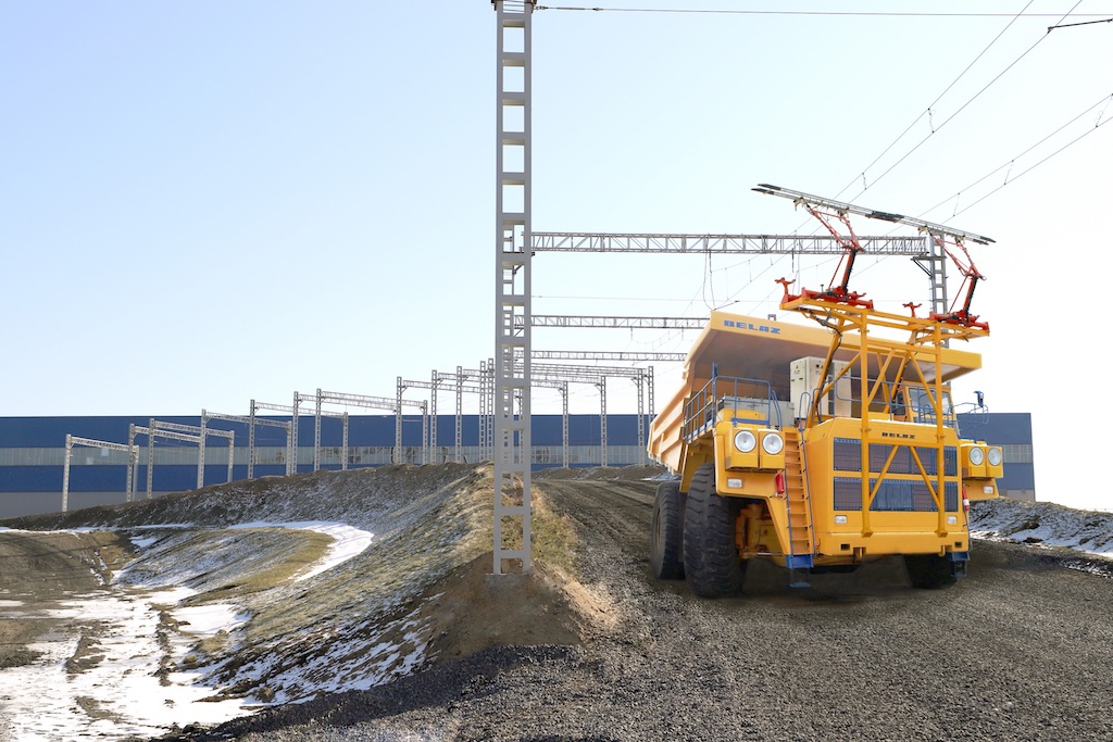 В рамках проекта БЕЛАЗ изготовил прототип карьерного самосвала и оборудование, которое управляет системой электропривода самосвала. При разработке учитывалась необходимость модернизации текущей линейки машин, которые эксплуатируются на разрезе Восточной горнорудной компании на Сахалине. Для проведения испытаний дизель-троллейвозного самосвала впервые на тестовом полигоне завода была спроектирована и изготовлена инфраструктура, включающая в себя тяговую подстанцию для обеспечения подачи необходимого напряжения на несущую токопроводящую сеть. В начале апреля 2021 года опытный прототип самосвала впервые вышел на испытания без нагрузки и проехал под электротягой с питанием от контактной сети 0,6 кВт, преодолев 10%-й подъем. В июне на заводе начнутся испытания техники с номинальной нагрузкой в 220 тонн и питанием от сети 2 кВт.