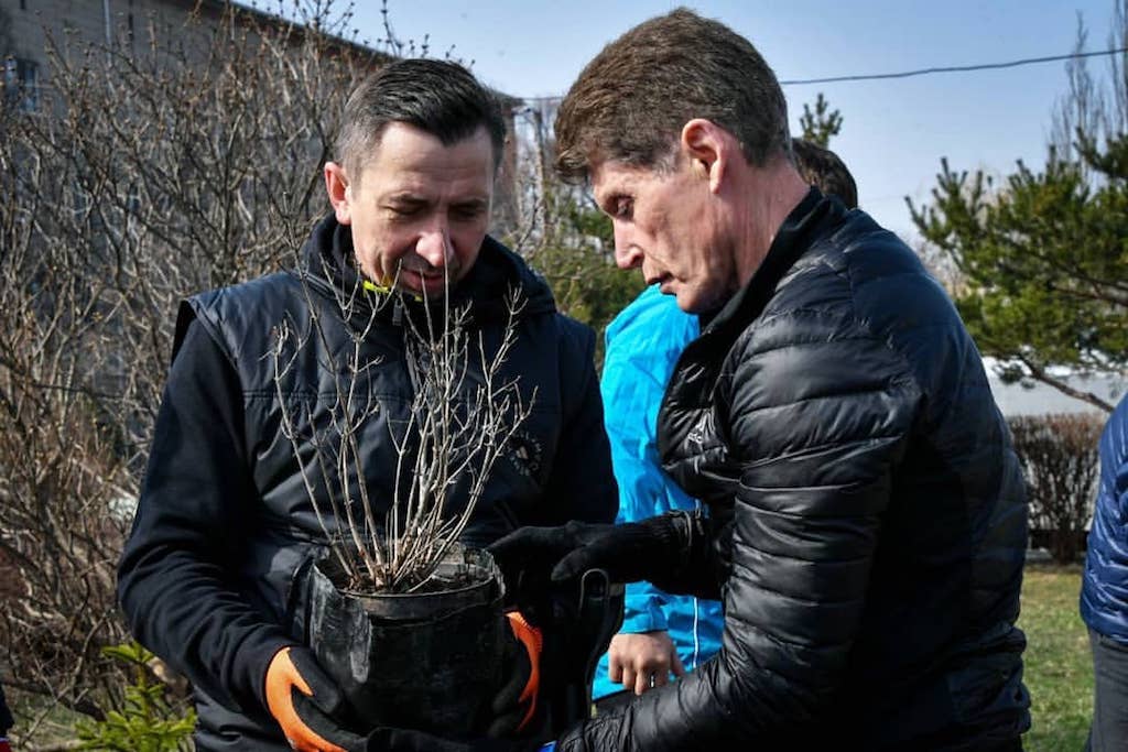 Мероприятия «Экомарафона» весной продолжила серия «комсомольских» субботников, приуроченных к 50-летнему юбилею Всесоюзной ударной комсомольской стройки – Восточный Порт. В одном из них принял непосредственное участие глава края Олег Кожемяко. Экологическая акция стартовала с массовой «Зарядки чемпионов», которую провели известные в крае спортсмены. После разминки команда волонтёров, портовиков и жителей Врангеля, возглавляемая губернатором Приморья, приступила к совместной посадке саженцев, уборке сквера около памятника Виктору Васяновичу и побелке деревьев. В тот день одно из самых популярных общественных мест посёлка украсили более 100 саженцев сакуры, ели и японской спиреи.