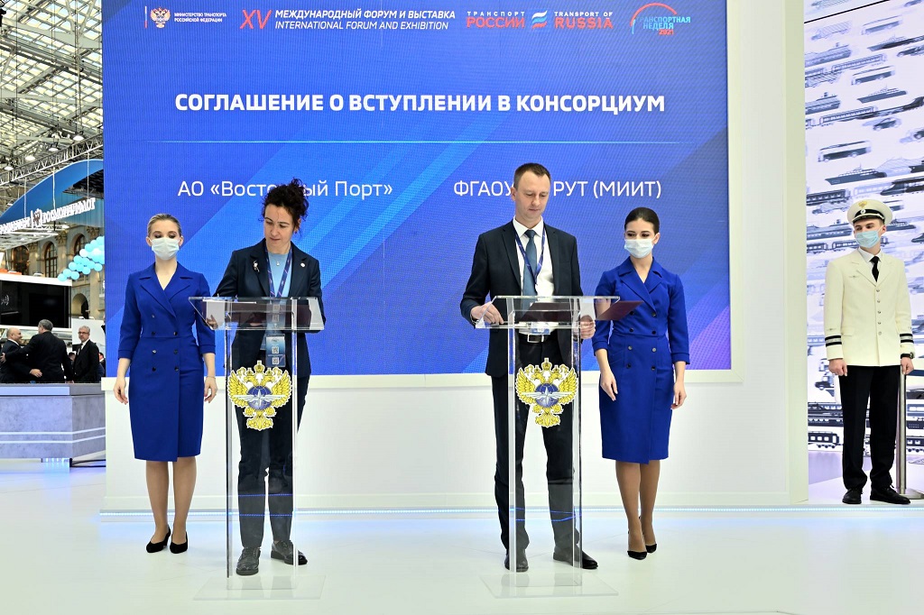 Одним из ключевых событий работы АО «Восточный Порт» на полях XV Международного Форума и Выставки «Транспорт России – 2021» стало подписание знакового соглашения об участии «восточников» в стратегическом проекте «Углеродно-нейтральный транспорт», в рамках которого «Восточный Порт» присоединился к консорциуму, созданному на базе Российского университета транспорта с целью развития проекта. Участники консорциума объединят усилия с целью развития приоритетных направлений развития РФ на период до 2030 года, в том числе, транспортной отрасли и социальной сферы.
