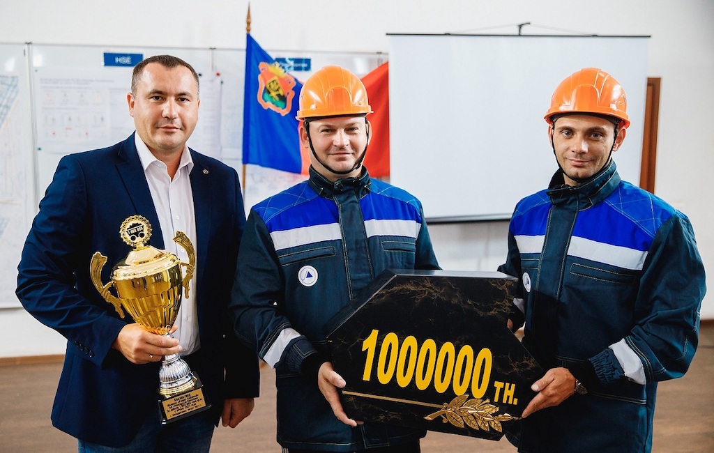 С производственным достижением горняков чествовали в торжественной обстановке. Руководители поблагодарили коллектив за слаженную работу. По традиции передовики производства передали им символический угольный камень с надписью «1 млн тонн угля».